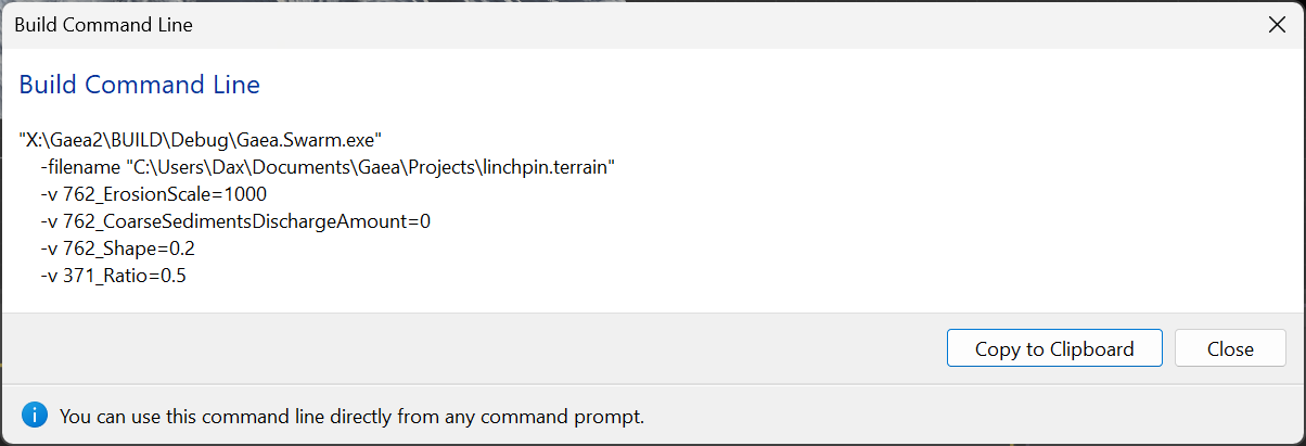 See Command-line Interface for details on the full CLI available in both Gaea.exe and Gaea.Swarm.exe