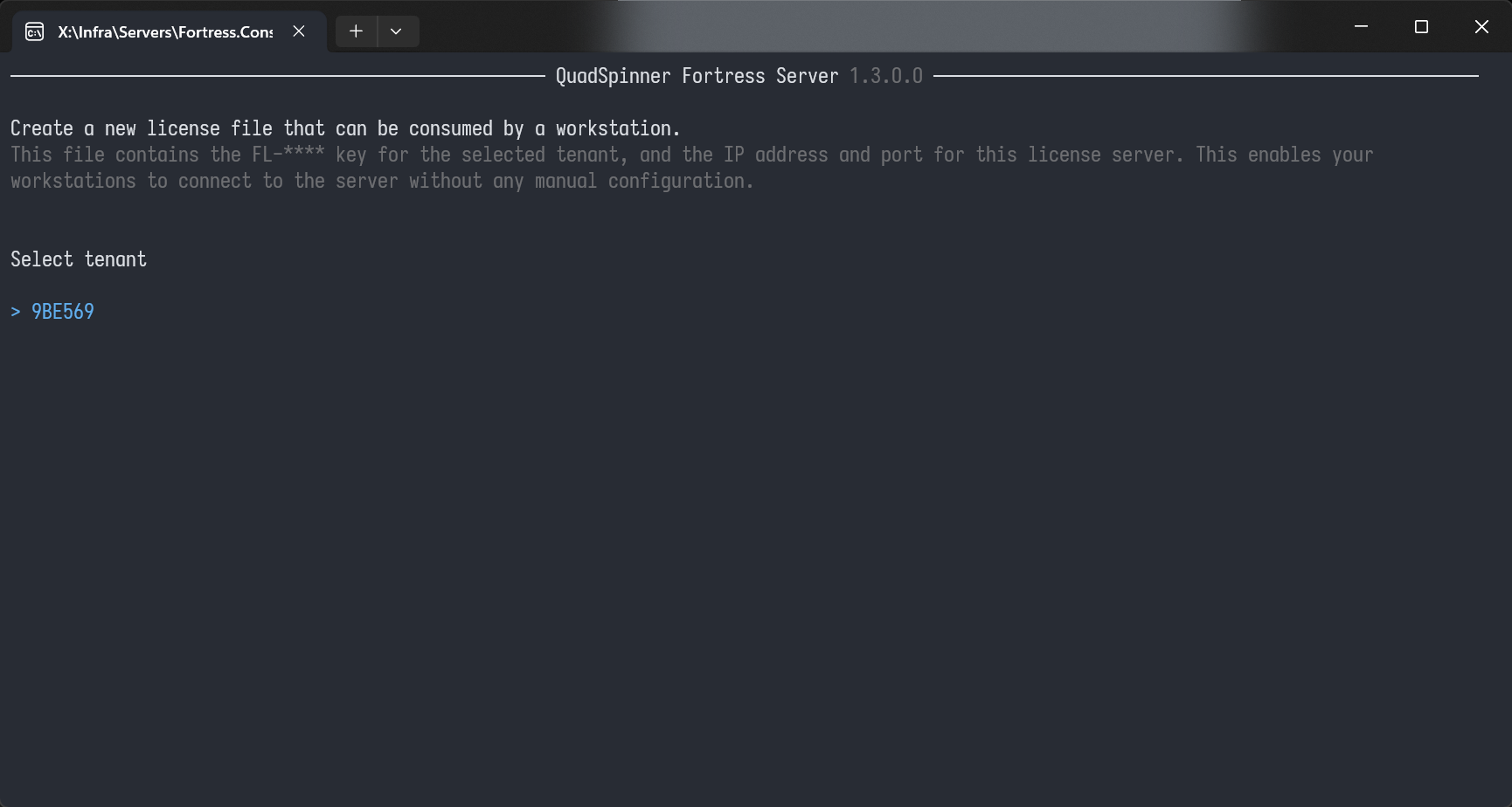 Use Create License File in the Fortress Console to generate a workstation license file.