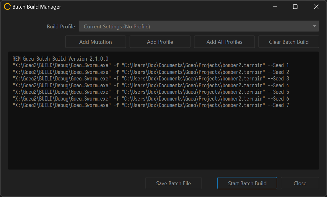 If you find yourself repeating these builds, save the batch build as a Windows Batch (.bat) file.