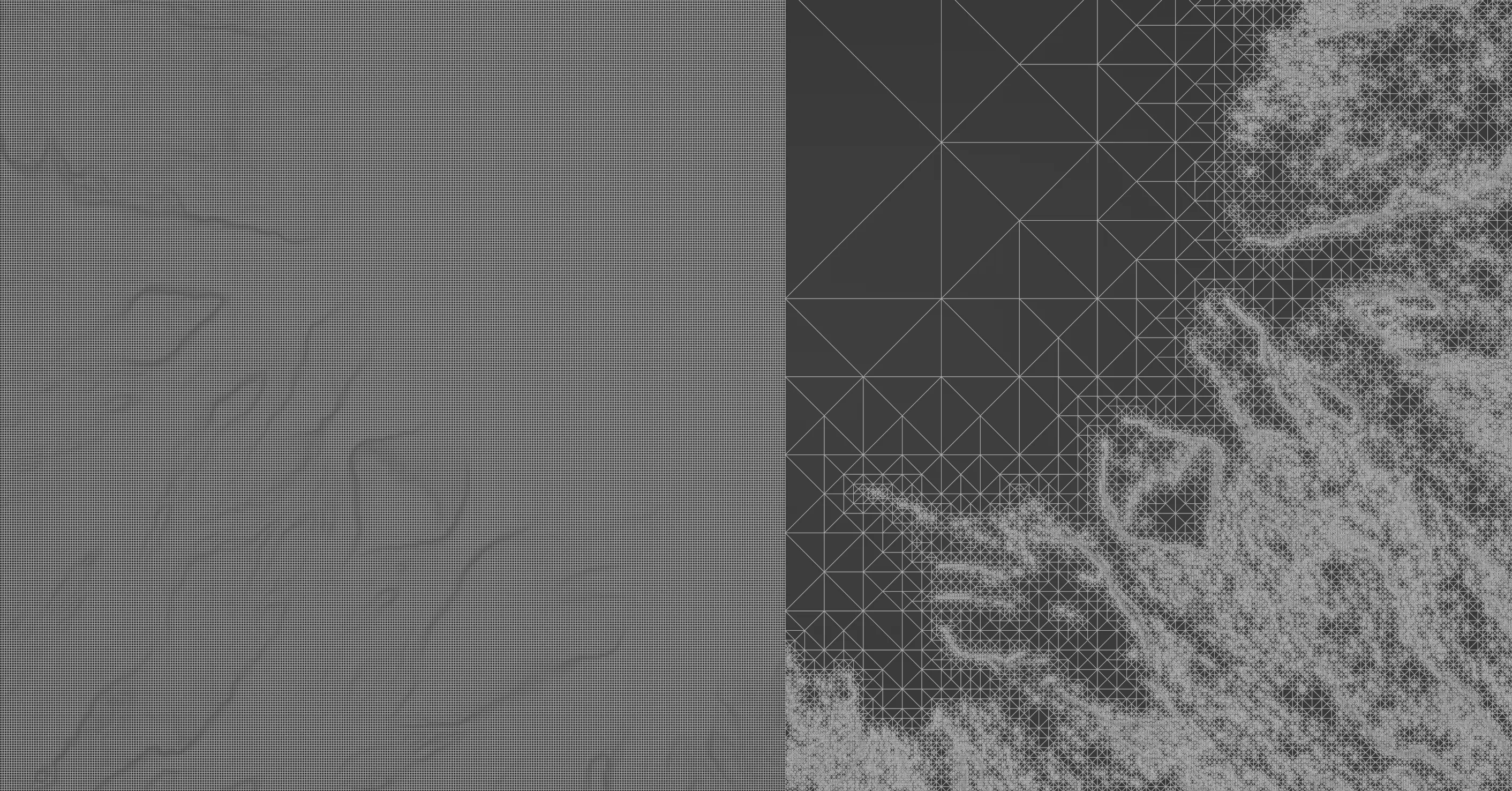 You can choose to export Optimized meshes when using the Mesher node. Our proprietary algorithms can help you reduce the polygon count based on the complexity of the terrain. This will budget more polygons where there are complex details and fewer polygons for flatter areas. This can lead to up to 60% reduction in polygon count in typical scenarios.