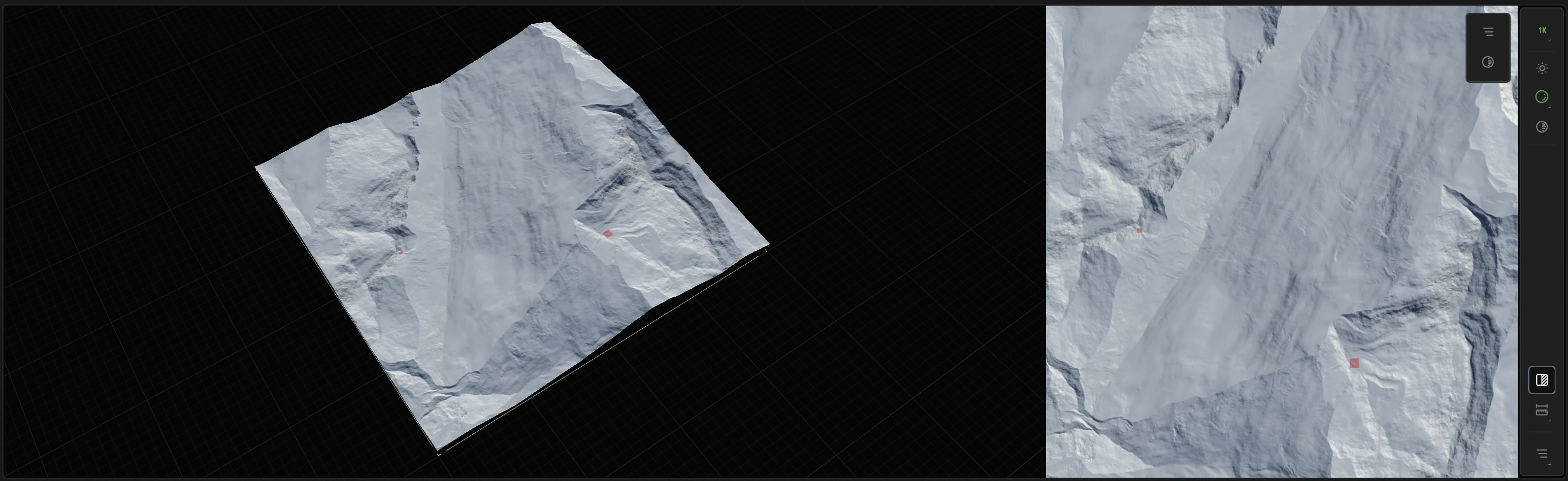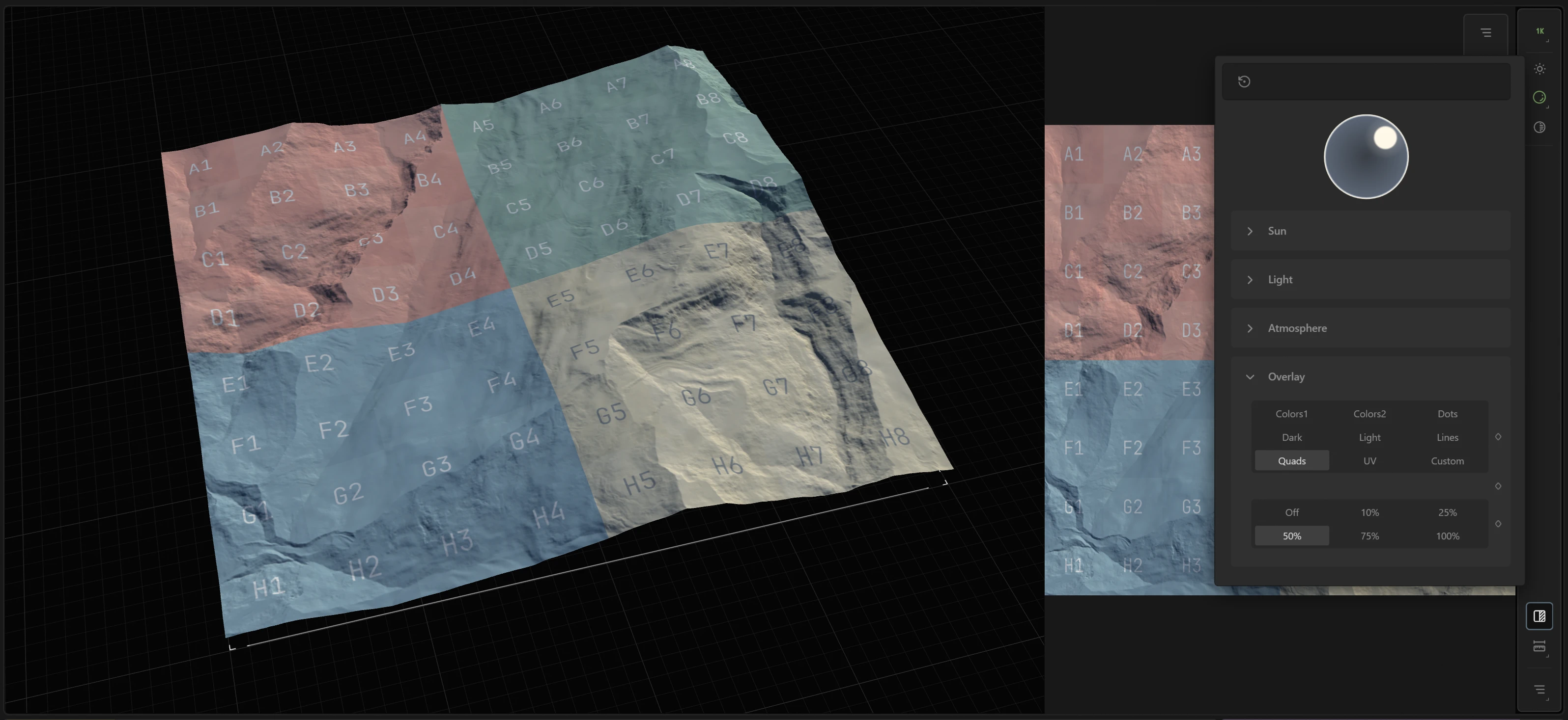 Gaea 2.1 ships with multiple pre-defined overlays that you can use for showing relative scale on your terrain. These are rendered on top of your terrain, so you can visualize it easily without modifying anything on your graph. You can change the overlay and its opacity in the Sky Editor.