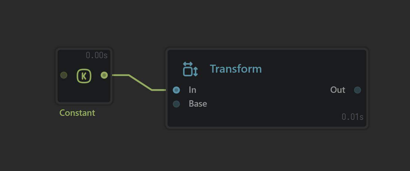 First we create a Constant node and set its value to 1.0. Then connect it to a Transform node.